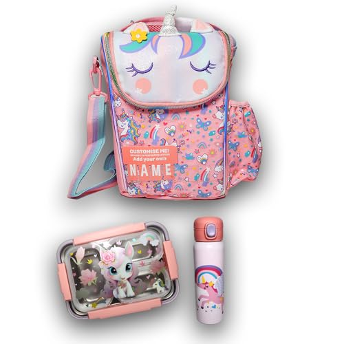 3 in 1 set- thermal insulated lunch bag with leakproof stainless steel lunch box 810 ml and a sipper bottle for kids, Air-Tight Set for School and Outdoor Picnics, Leakage Proof Lunch Box (Unicron)