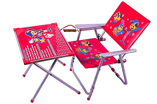Yashvin Metal Table And Chair Set For Kids By Brand,ABCD,1234 Cartoon Printed Rounded Edges Foldable Study Table And Chair Set For Kids Boy And Girl (Age 2 To 7 Year Old) (Design Vary)_MQ32