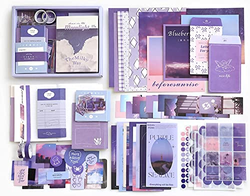 YIFELY Paper Vintage Aesthetic Scrapbook Kit(346Pcs)Scrapbooking Supplies Kit With Bullet Junk Journal,Stationery,A6 Grid Notebook With Graph Ruled Page Diy Journaling Gift For Teen Girl Women,Purple
