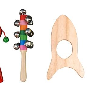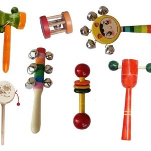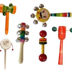 3 Wooden Rattles Toys 1 Teether for Baby/New-Born Infant Kids – Set of 4 pcs – Multicolor – Discover Sounds, Develops Sensory Skills