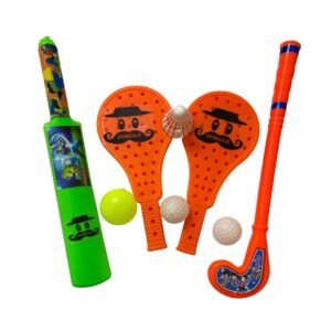 3 in 1 Super Combo Plastic BAT – Ball, Racket & Hockey for Kids Indoor Outdoor Toys Age 2 Year + (G/O/R)
