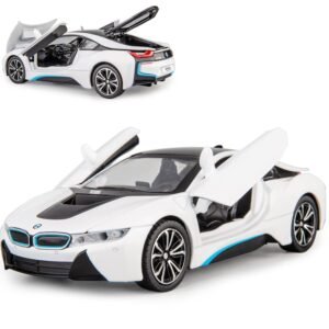 1:24 Diecast Model Alloy BMW I8 Metal Pull Back Car with Sound & Light,4 Openable Doors,Toy Vehicles for Kids Gift[B M W I8-White]