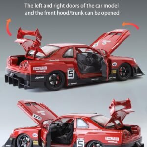 1:24 Scale Compatible for Nissan GTR Model Car Toy, Zinc Alloy Pull Back Toy Car with Sound and Light for Kids Boy Girl Gift/Red – Color