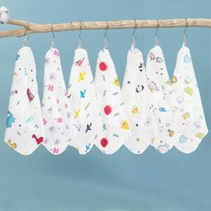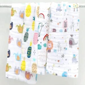 ZAPLES Muslin Cloth Printed Baby Bath Towel Organic Cotton Super Soft Bathing Towels for Newborn Highly Absorbent for Infants, New Born Babies and Toddlers Boys and Girls White Size 50 x 100 cm (1)