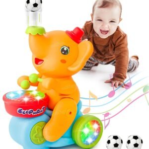Zest 4 Toyz Musical Walking Elephant Drummer Toy with Flashing Light & Sound Toy for Kids Beating Drum Blowing Ball Toy – Yellow