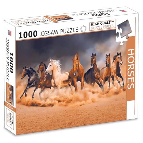 BRIJBASI Horses 1000-Piece Jigsaw Puzzles for Kids and Childrens “ Realistic Illustration Challenging Brain Booster Gifts, Fun and Creative Fun Game – Ages 9+ (1000 Pcs)