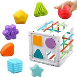 Brand Conquer 6 in 1 Learning Cube Educational & Learning Activity Toy Including Blocks, Clock, Alphabets-Tree,Transportation Vehicles,Music Keyboard & Mirror for Kid (Small 6 in 1 Cube), Multicolored