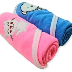 First Kick Baby Cotton Bath Towels New Born Combo Pack Of Hooded Soft Wrapping Towel Pack Of 2(70 Cm X 66 Cm) Set Of 2, Pink