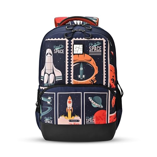 Gear Astronomical Stamp 4 Compartment Backpack 17"/28L Medium Water Resistant School Bag/Casual Backpack/Daypack/Kids Bag for Boys/Girls (Navy-Orange)