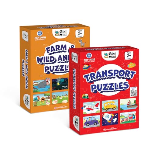 GiniMini Combo Set of 2 Jigsaw Puzzles for Kids | 2 Piece Transport & Farm Animals Puzzles | Educational Toy for Cognitive Development | Fine-Motor Skills | Age 1, 2 & Above