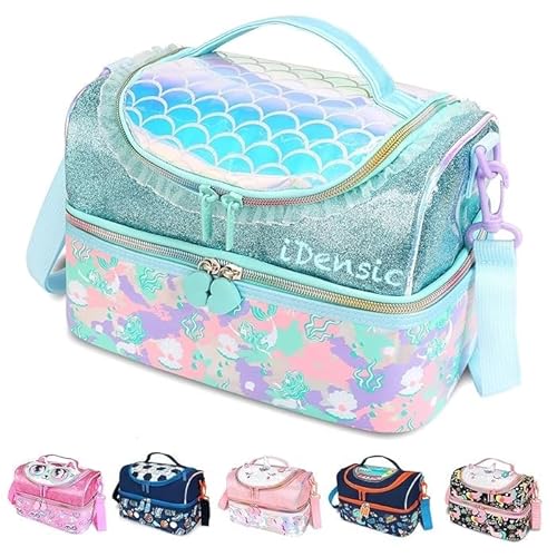 iDensic Insulated Lunch Bag for Kids, Lunch Bag for Girls Boys, Men, Women, Toddler Teen, School Travel Bag with Water Bottle & Lunch Box Holder Adjustable Strap (Mermaid Vertical)
