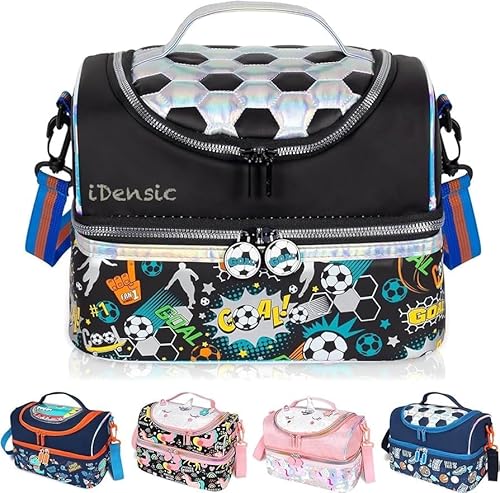 idensic Kids Double Decker Thermal Insulation Lunch Bag for Kids, Lunch Bag for Girls Boys, with Water Bottle and Lunch Box Holder with Adjustable Strap 7 litres,