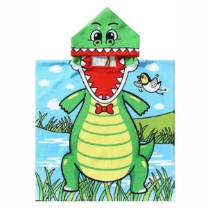 Hooded Poncho Towel for Kids | Double Side Terry | Printed Cape Towels for Kids (Dino)
