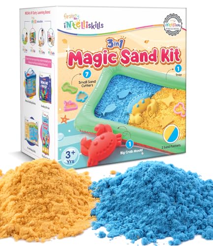 Intelliskills Premium Magic Kinetic Sand Kit with Shape Moulds for Kids, Art & Craft Activity Kit, Creative & Learning Toy for Toddlers, Sand Packets, 3+ Years (Green)