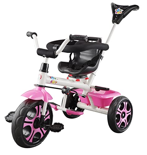 JoyRide Pink Cruiser Cycle for Kids -Boy&Girl- Baby Cycle | Bike for Kids with Eva Wheel,Safety Belt &Basket for Toys -Tricycle 30Kg Capacity (Parental Trike, Pink)