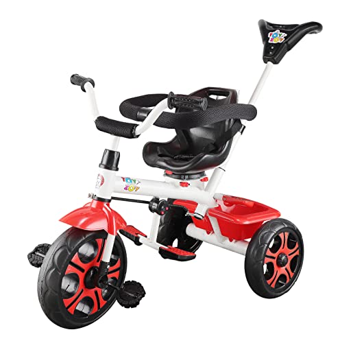 JoyRide Noise Bike Pedal Tricycle for Kids Toddler Trike Headlight, Music,Eva Wheels & Curved Seat and backrest Push Along Pedal Trike for 15 Months to 3 Years RED