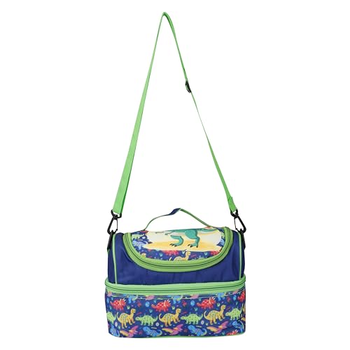 Ji and Ja® Multi Compartment Dual Slot Lunch Bag Double Insulated Tiffin Lunch Bag with Multi Zipper Pockets for School (Dinosaur Multi)