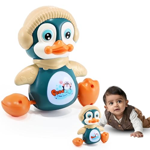 Kidology Crawling Penguin Baby Toy with LED Lights | Interactive Musical Kids Toy for Early Learning & Entertainment | Perfect Christmas and Birthday Gift for Toddlers & Infants (Cream)