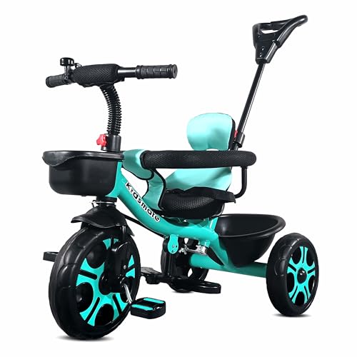 Kidsmate Thunder Plug N Play Kids/Baby Tricycle with Safety Guard Rail and Parental Control | Storage Basket | Fabric Cushion Seat & Bell for 12 Months to 48 Months Boys/Girls (Sea Green)
