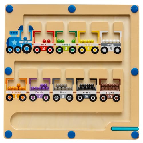 Magnetic Color & Number Maze – Montessori Wooden Puzzle Board for Kids Ages 3-5 | Fun Counting & Matching Game | Fine Motor Skills & Color Recognition Toy with Train Theme