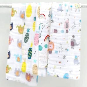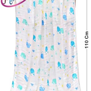 MOM\’S HOME Baby Super Soft Absorbent Muslin 6 Layer wash Towel- 100X100 CM – | 0-3 Years | Blue