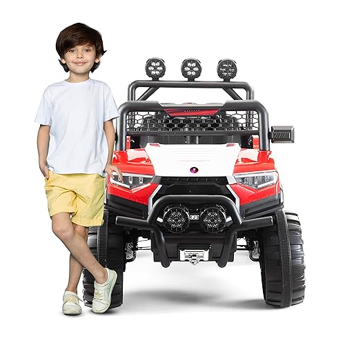 Norman Jr Battery Operated 4×4 ATV Runs on Garden & Sand Surface | Jeep Toy with Remote+Steering+RGB Light+Mp3 USB Music | Rechargeable Car for Kids to Drive 3 to 12 Years | XLarge Size (Bloody Red)
