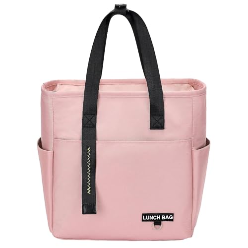 OCEANEVO Insulated Food Lunch Bag, Tiffin Bag, Lunch Box Cover for Office, School, College with Handle – Suitable for Unisex Adults and Children – 30 x 27 x 13 Cm – Pink
