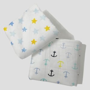 Organic Cotton Muslin Pack of 2 Baby Bath Towel 120 cm X 120 cm_ Multi Star & Arrow