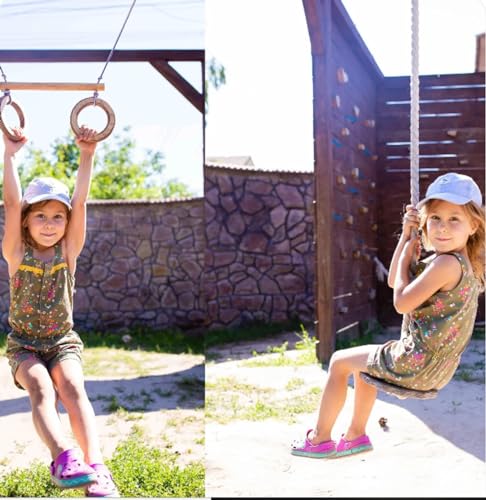 VIXERA Rope Disc Swing+Trapeze BAR with Rings, Ninja Warrior Obstacle Course for Kids, Wooden Gymnastic Ring Monkey Bars, Ninja Course for Kids Physical Exercise Tools