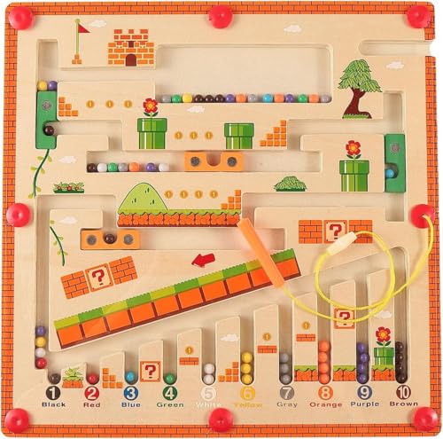 Voroly Wooden Magnetic Maze Board Super Mario Theme Color Matching Learning Counting Puzzle Board Toddler Fine Motor Skills Toys for Boys Girls 3 4 5 Years Old
