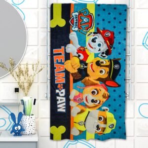 Team Paw Kids Bath Towel, 350 GSM, 60×120 cm ? Soft, Absorbent, Quick-Drying, Cartoon Character Towel for Boys & Girls