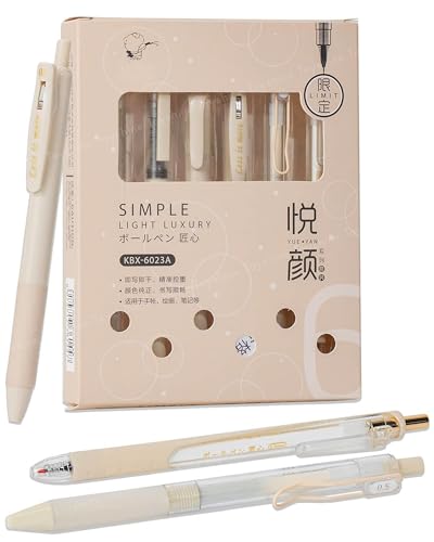 Toyshine 6 pcs Kawaii Click Action 0.5mm Neutral Pens Set High Aesthetic Value Fast Drying Kids Stationery Gift – Beige
