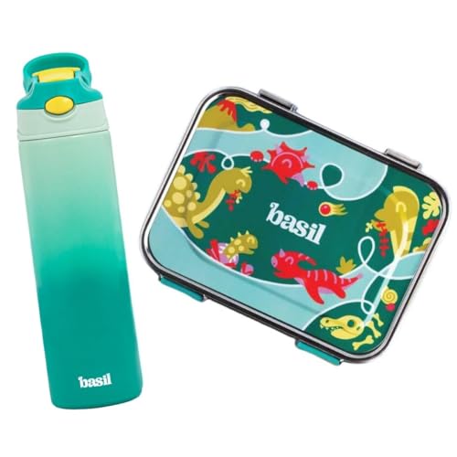 Basil Lunch Box Combo -Lunch Box & Waterbottle| Stainless Steel Tiffin Box for Kids | Leak Proof Lunch Box |Stainless Steel Sipper Bottle for Kids|-Green Dino