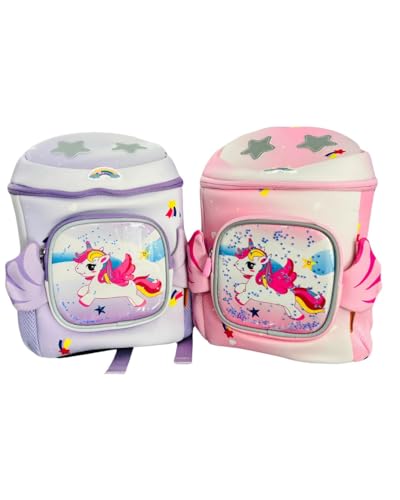 Unicorn Kids Backpack, Waterproof School Bag with Wing Design, Pink and Purple, Age 3-10 Years