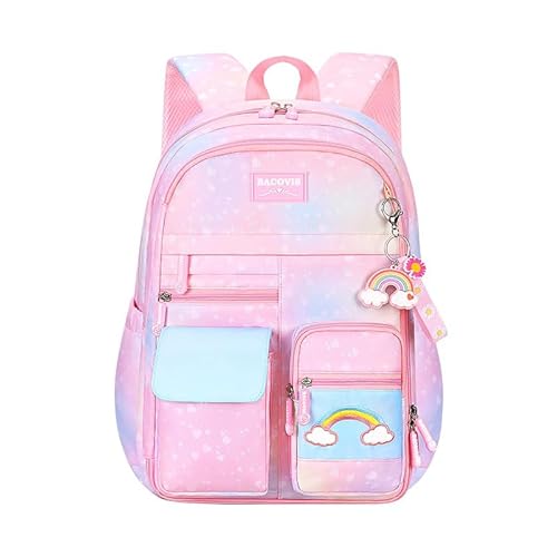 TRUE HUMAN School Bag for Girls, Lightweight Casual Backpacks for Women,Stylish and Trendy College Backpacks for Girls (RAINBOW SERIES) (Rainbow Pink)