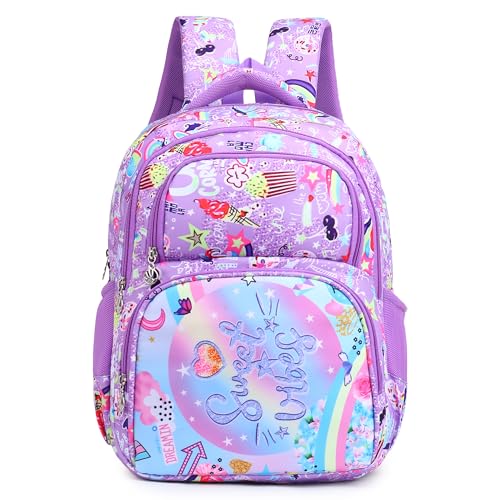 SNUG-ON Sweet Pea Printed Kids School Bag with Stationery Pouch | Carry-On with Bottle Holder Pocket & Easy to Fixed Shoulders Straps | Purple – 17 Inch | Lightweight Backpack for 9-12 Years Girls