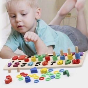 WISHKEY Wooden 6 in 1 Multifunctional Learning Board Puzzle, Numbers, Shapes, Fishing Game, Stacking, Montessori Game Educational Toys for Kids, Multicolour, 3+ Years (Pack of 1)