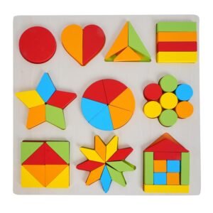 Wooden Geometric Puzzles for Kids, Colourful Shapes Puzzles for Kids for Age 2 Wooden Puzzles for Kids Puzzle Game Brain Games for Kids 3-5 Years Shape Sorter Toy for Kids