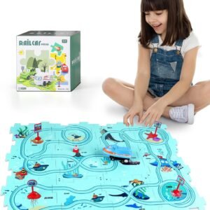 Car Puzzle Track Set for Kids with A Cute Vehicle Toddler Puzzle Track Play Set- Critical Thinking Educational Toys for 3-5 Year Old Boys Girls (Ocean 25 Pcs)