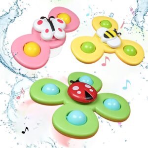 Suction Cup Spinner Toys for 1 2 Year Old Boy & Girl | Spinning Tops Toddler Toys | 1 2 Year Old Boy Birthday Gift for Infant | Sensory Baby Bath Toys (Pack of 3)
