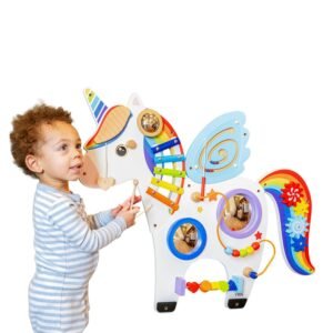 Unicorn Montessori Activity Wall Panel Toy | Wooden Sensory Playboard for Kids & Toddlers | Bead Maze, Gears, Xylophone | Wall Décor for Playroom & Preschool (1-6 Years)