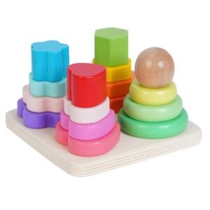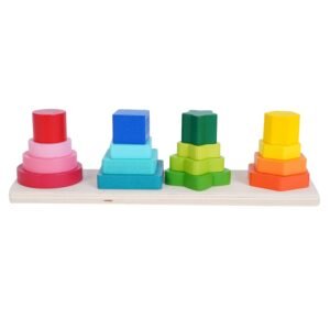 Wooden Geometry Angle Blocks Four Shapes Four Colour Stacker Shape Sorter Column Puzzle toyfor Kids Age 2-6 Years (Wooden Geometry Stacker)