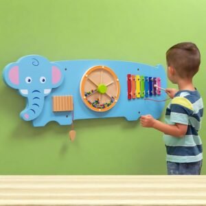 Wooden Elephant Activity Wall Panel – Montessori Sensory Busy Board for Kids, Educational Musical Xylophone Toy, Fine Motor Skills & Interactive Play for Toddlers (1-5 Years)