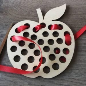 Wooden Lacing Apple Threading Toys Wood Lace Block Puzzle Shape Travel Game Toys Early Learning Fine Motor Skills Educational Gift for 2 3 4 Years Old Toddlers Baby Kids|Pack of 1 (5 in)