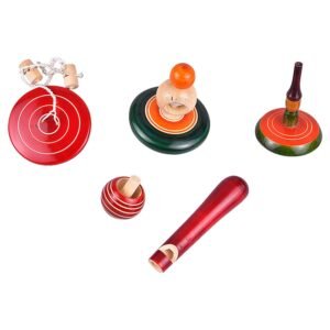 Wooden Hand Spinning Tops Combo Pack of 5 nos (Buguri, Lattu, Bambaram) Multi Color – Non Toxic channapatna Hand Crafted Desi Toddler/Kids Indoor Toys for Kids, Return Gift