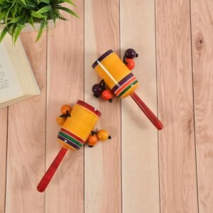 Wooden Handheld Rattle Toys for Baby, Infants, New Born Babies (0+ Years) – Multicolor – Set of 2 pcs – Discover Sounds
