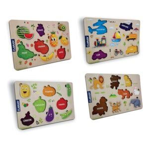 Wooden Learning Educational Board for Kids, Puzzle Toys for 2 Years Old Boys & Girls (Combo of 4)