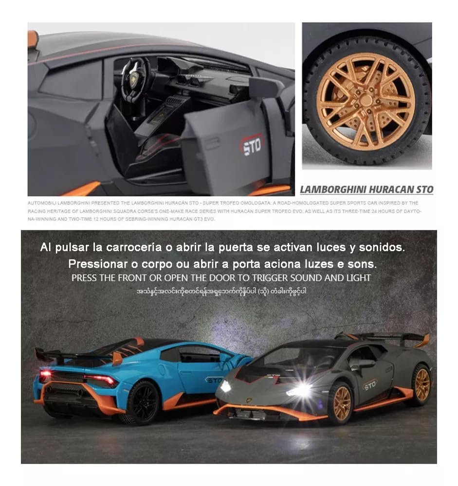 1/24 Big Lamborghini Huracane STO Toy Car – Metal Pull Back Diecast Model with Openable Doors, Sound & Lights for Kids and Collectors? Multicolor ?