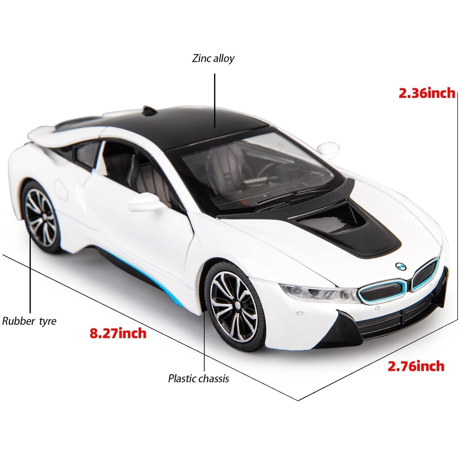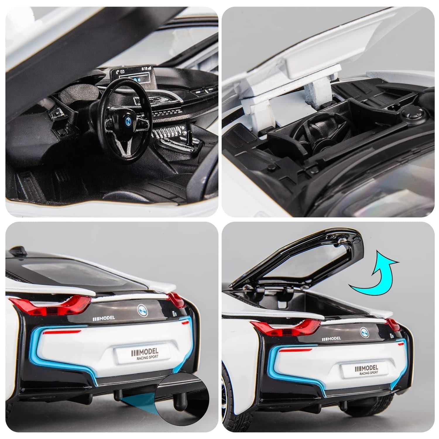 1:24 Diecast Model Alloy BMW I8 Metal Pull Back Car with Sound & Light,4 Openable Doors,Toy Vehicles for Kids Gift[B M W I8-White]