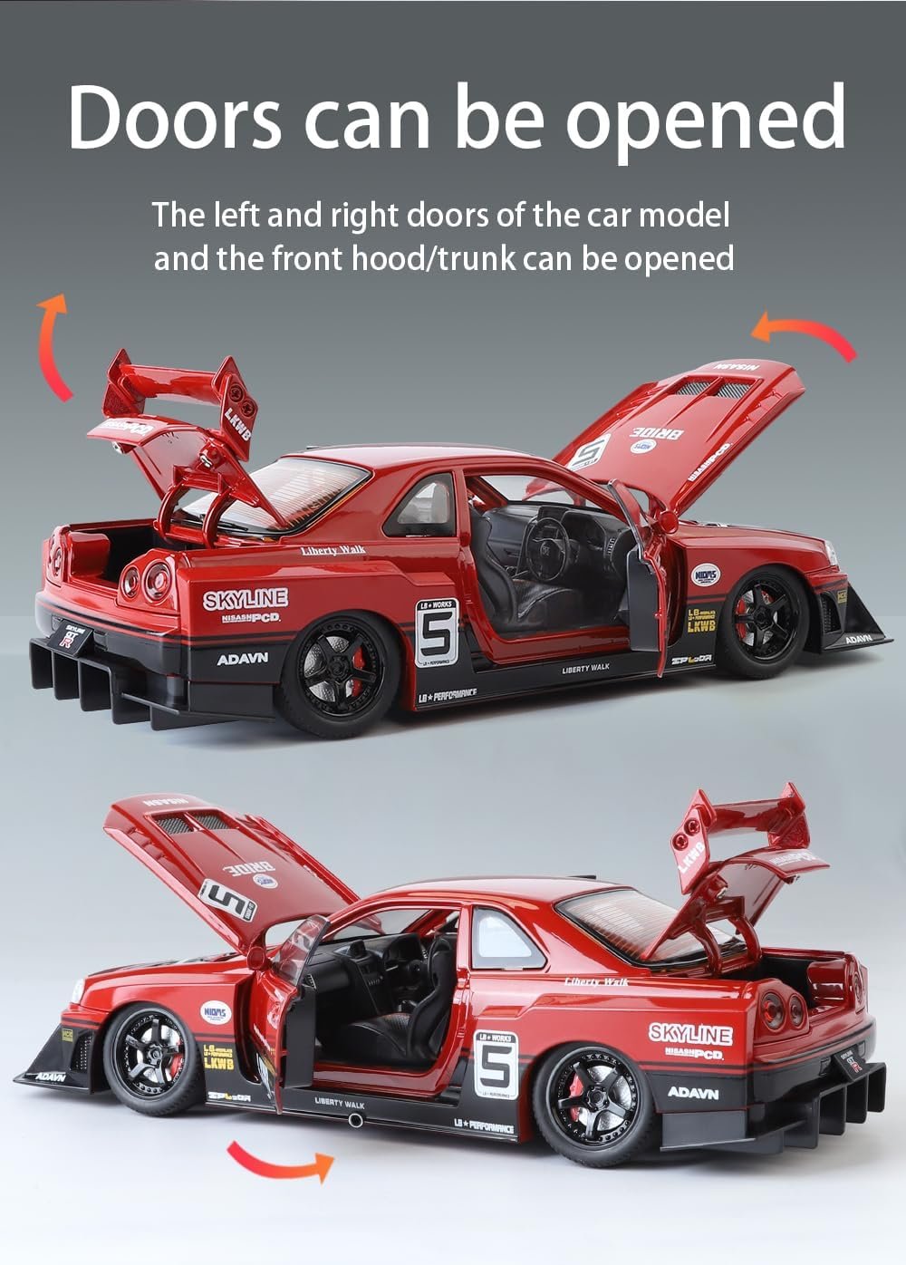 1:24 Nissan GTR Skyline S15 Diecast Metal Pull Back Car with 4 Openable Doors with Sound and Light Toy Decoration car Best Gift Toys for Kids ?Colors as Per Stock?